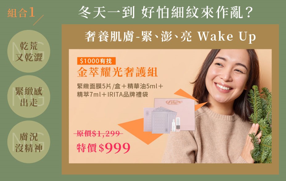 緊緻面膜主打緊、澎、亮,有感度高;精華油能補充光澤與柔軟度;精萃則幫忙在夜間加強修護。這組完全命中冬季緊緻與乾燥族群,還附上超精美的IRITA品牌燙金禮袋,是百元聖誕小禮物中最有質感的保養提案之一。