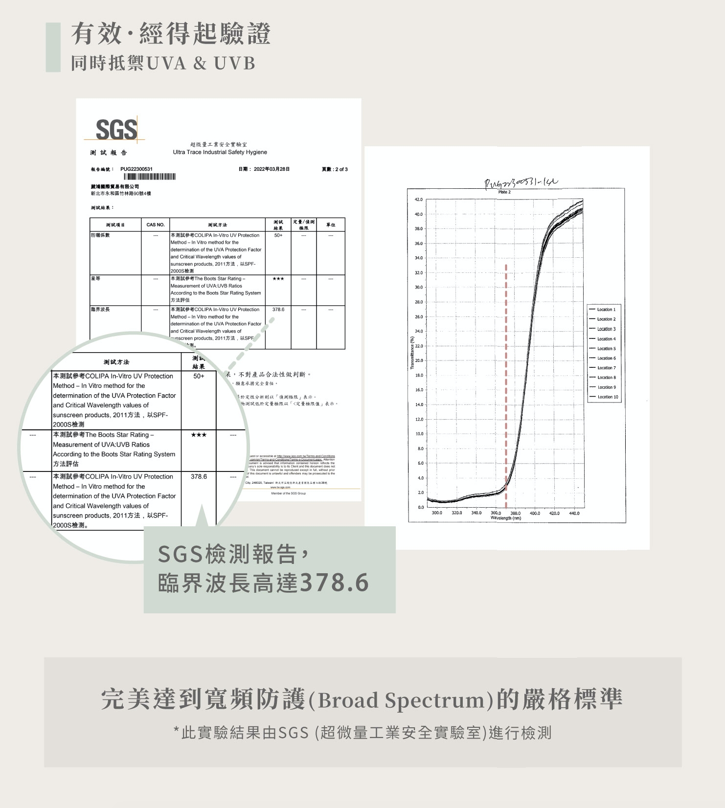 除此之外,光感輕透潤色防曬乳臨界波長高達378.6,完美達到寬頻防護 (Broad Spectrum)的嚴格標準,讓有效經得起驗證。