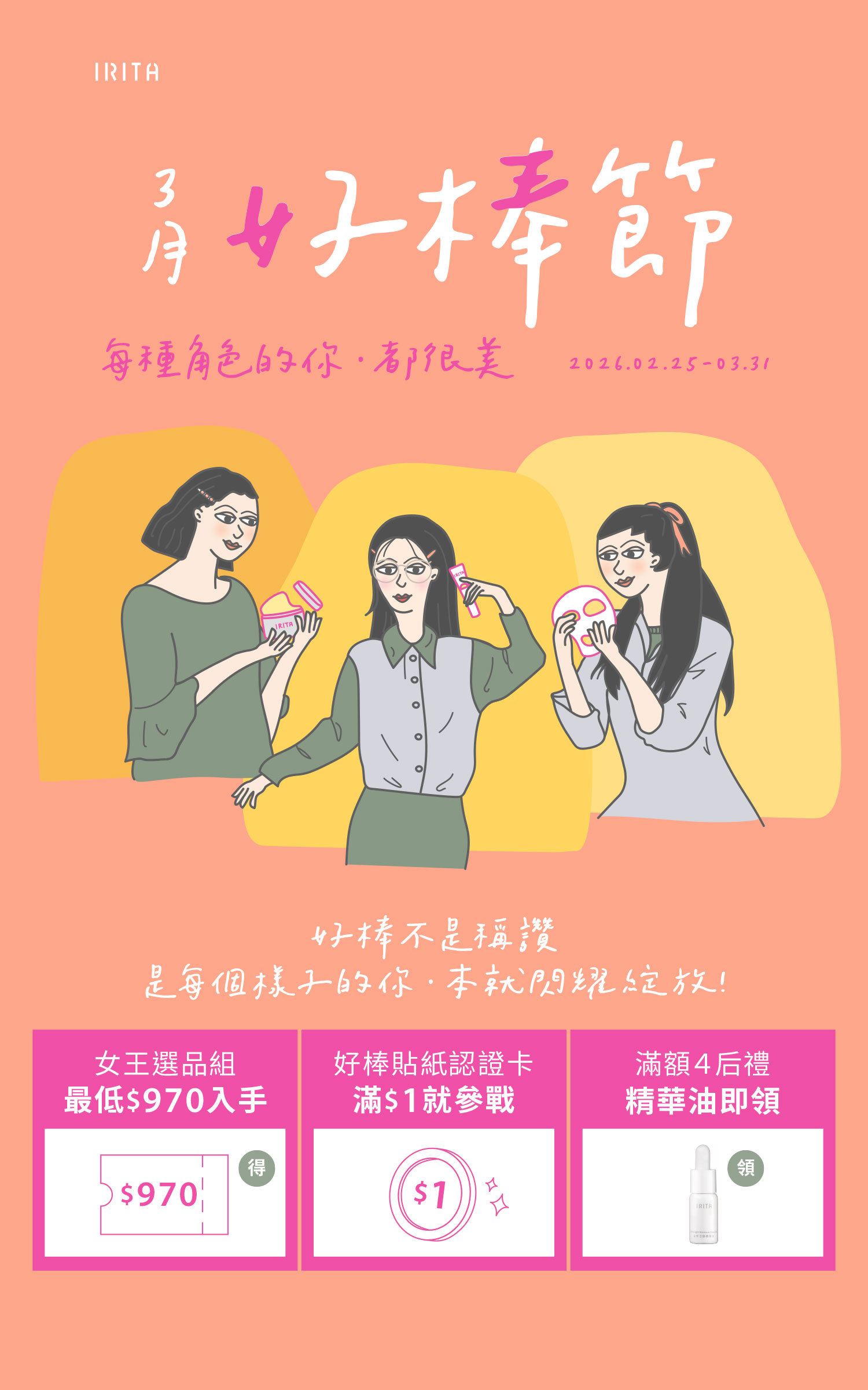 ◾ 激亮瞬白維他命C面膜 3片/盒 ◾ EGF彈潤修護面膜 5片/盒 ◾ 胜肽賦活緊緻面膜 5片/盒 ◾ Q10全效保濕水凝膜 90ml