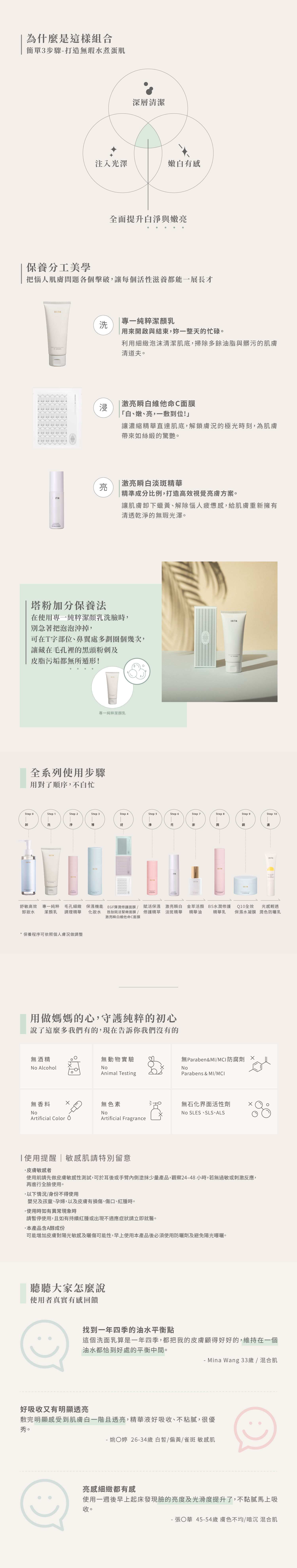 全產品不含人工香精, 部分產品含有天然精油,孕婦請遵照醫囑使用;特殊敏感性肌膚使用前請先進行局部測試後再使用。