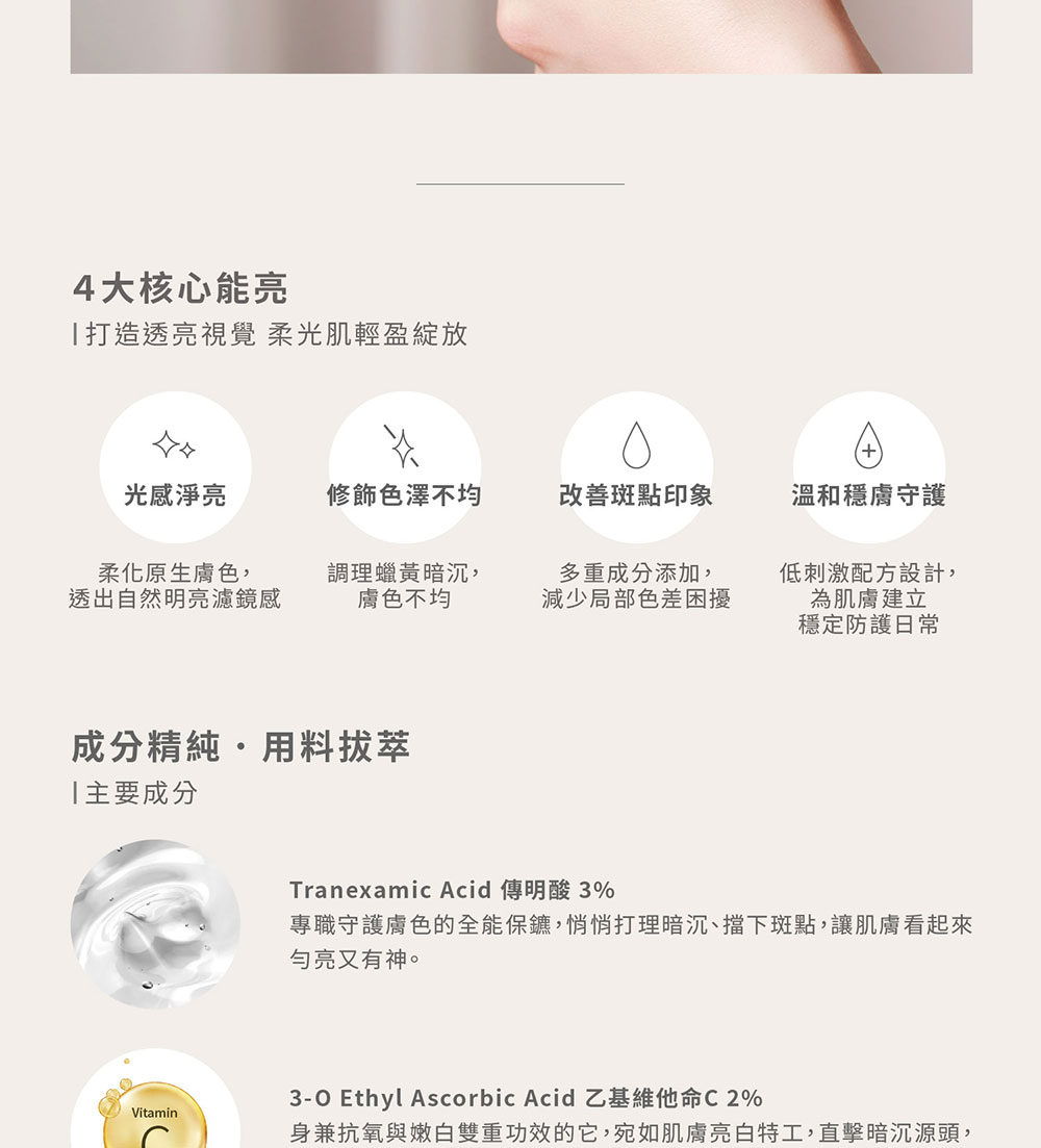 擊退暗沉與斑點,煥發自然透亮,展現無瑕光采。