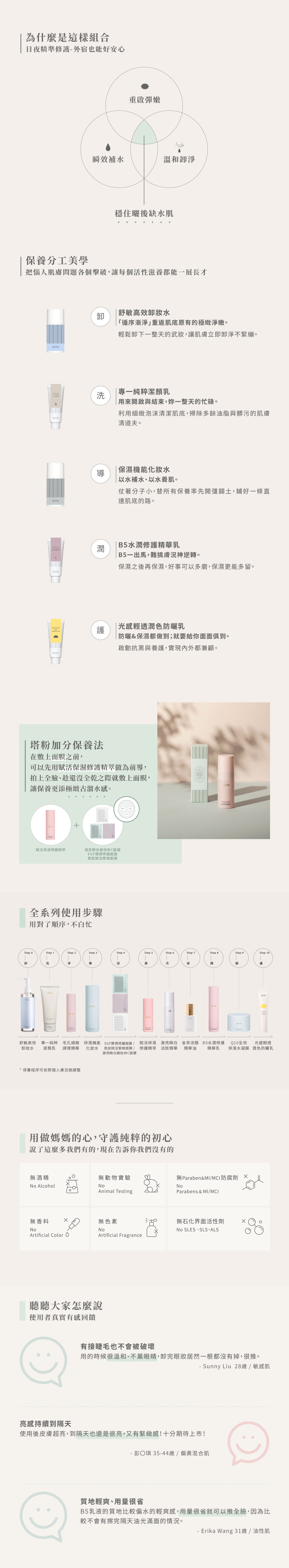 全產品不含人工香精, 部分產品含有天然精油,孕婦請遵照醫囑使用;特殊敏感性肌膚使用前請先進行局部測試後再使用。