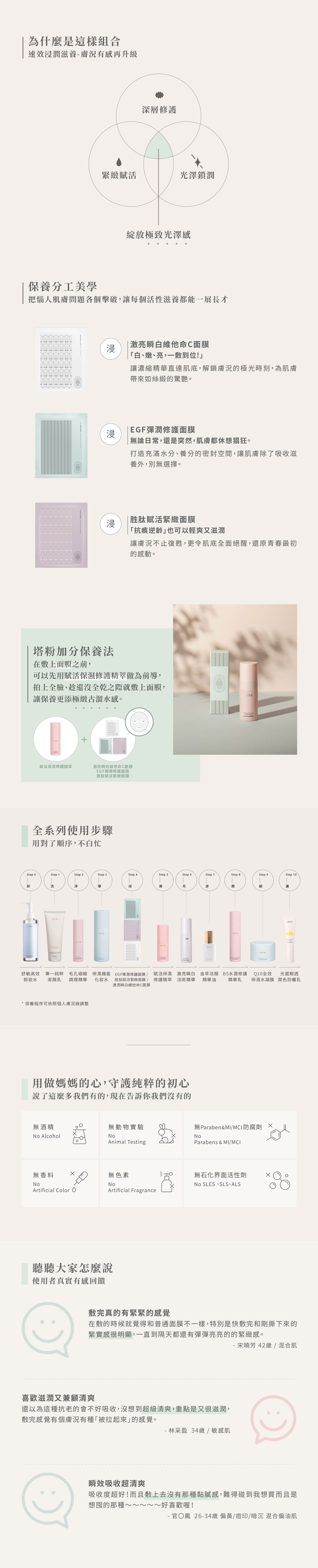 全產品不含人工香精, 部分產品含有天然精油,孕婦請遵照醫囑使用;特殊敏感性肌膚使用前請先進行局部測試後再使用。