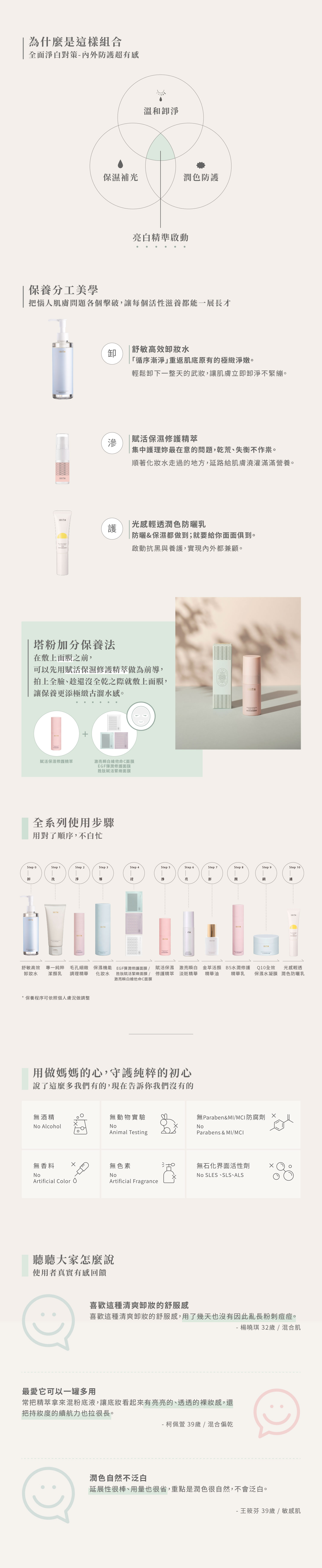 全產品不含人工香精, 部分產品含有天然精油,孕婦請遵照醫囑使用;特殊敏感性肌膚使用前請先進行局部測試後再使用。
